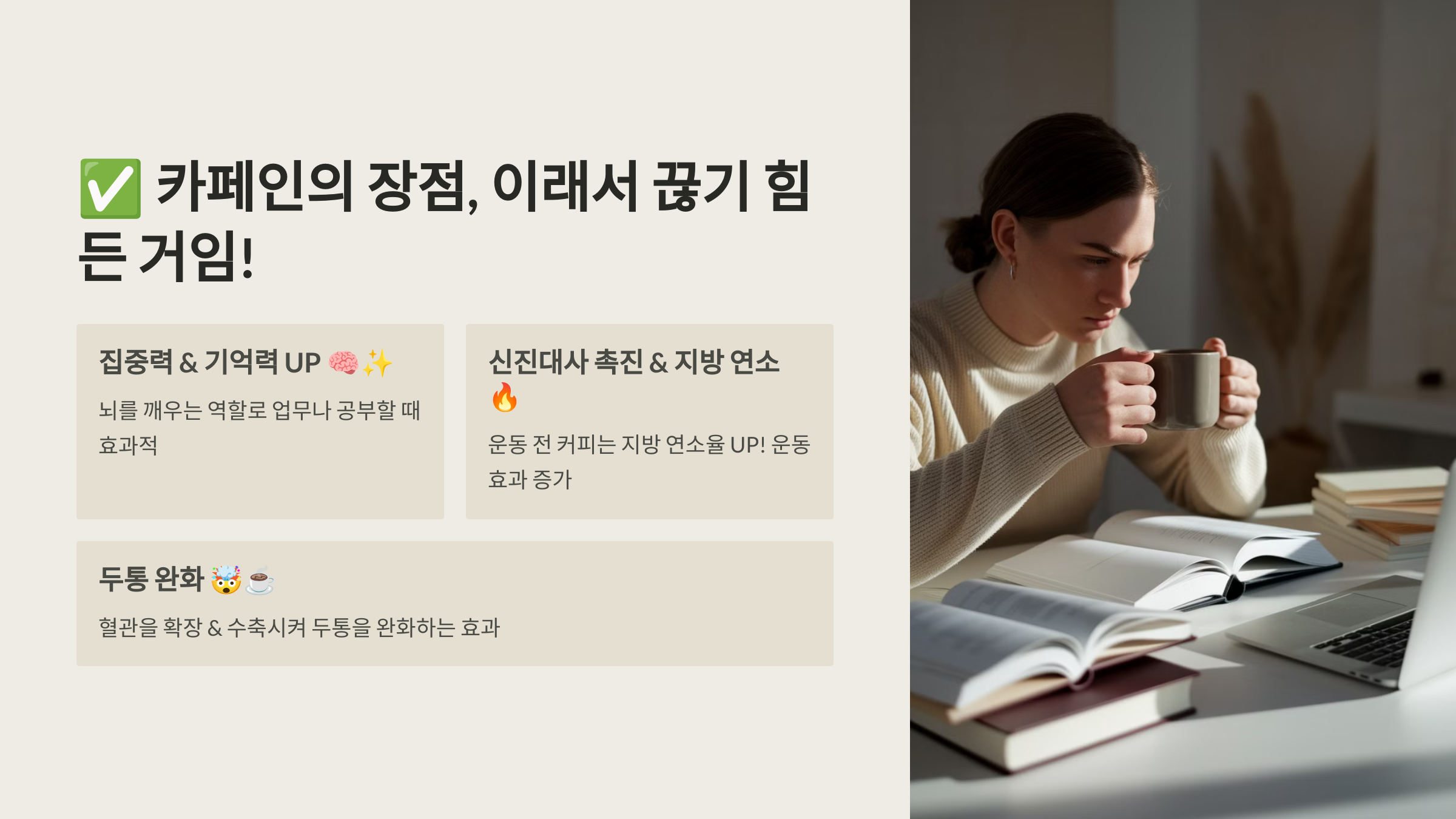 ## ✅ 카페인의 장점, 이래서 끊기 힘든 거임!
