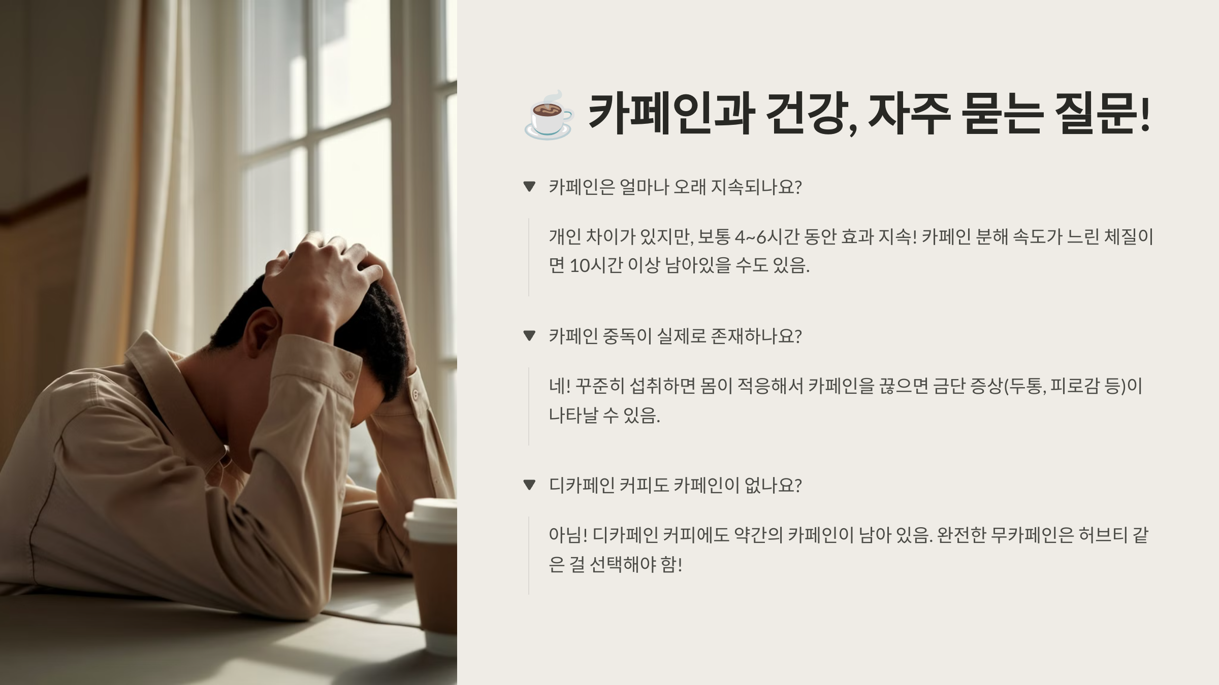 ## ☕ 카페인과 건강, 자주 묻는 질문!