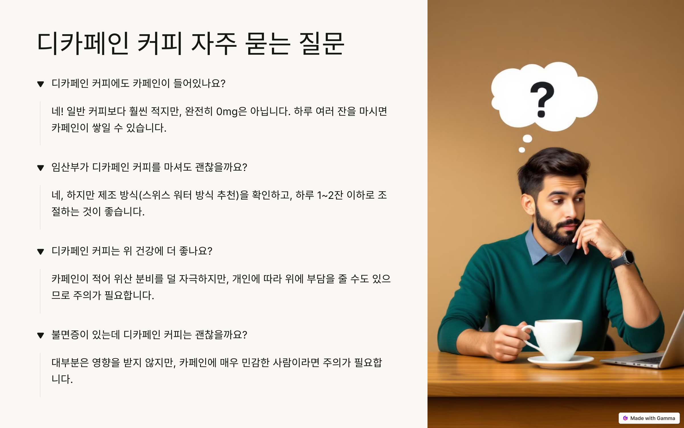### 3. **디카페인 커피는 위 건강에 더 좋나요?**