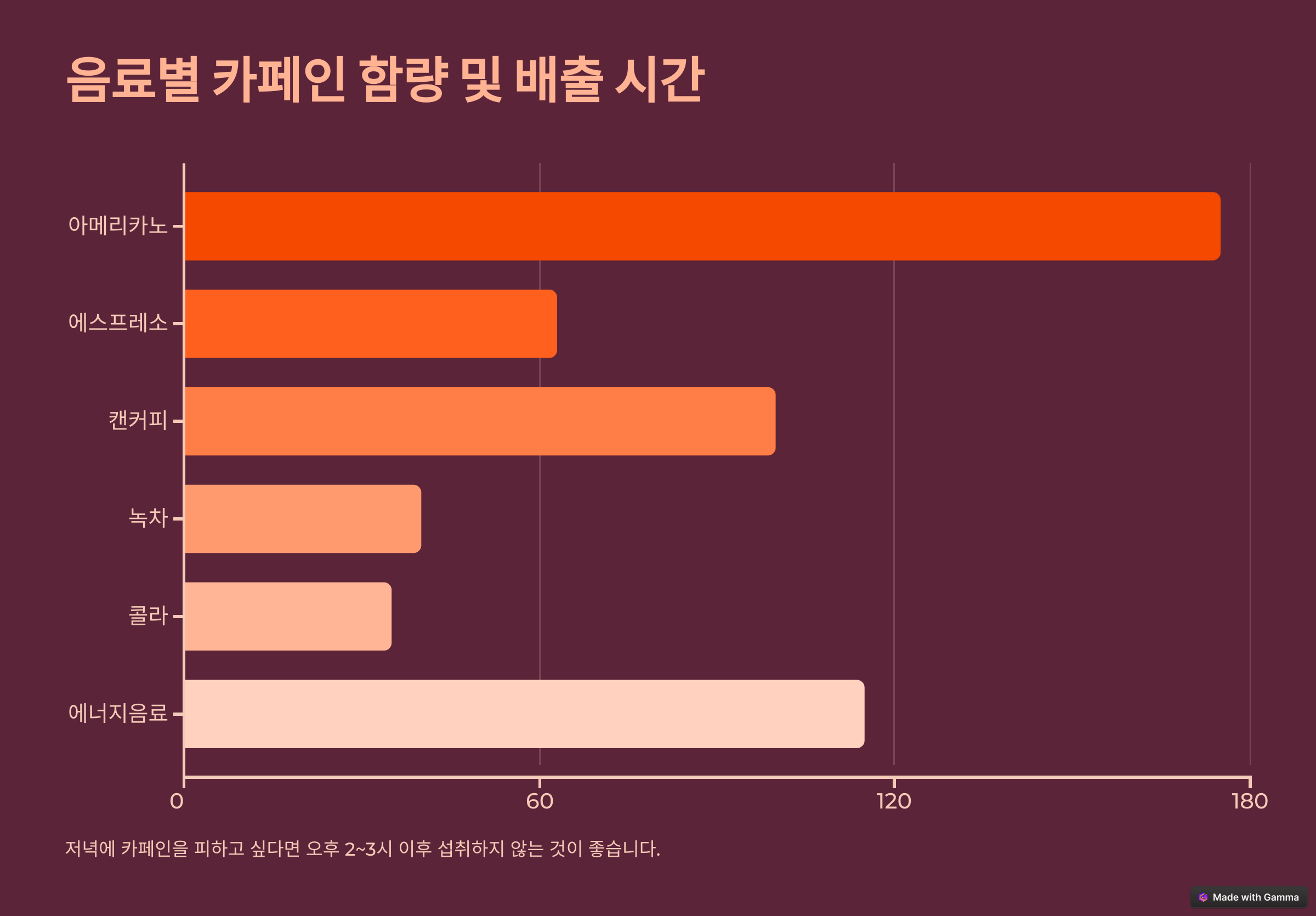 ## ☕ 음료별 카페인 함량 및 배출 시간